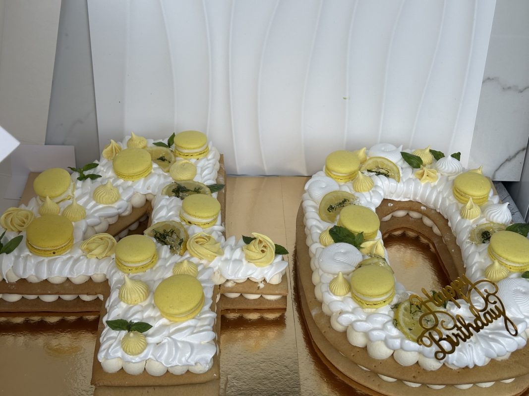 Deco: macarons au citron /vanilla des meringue citron caramélisées avec petits touche de basilic